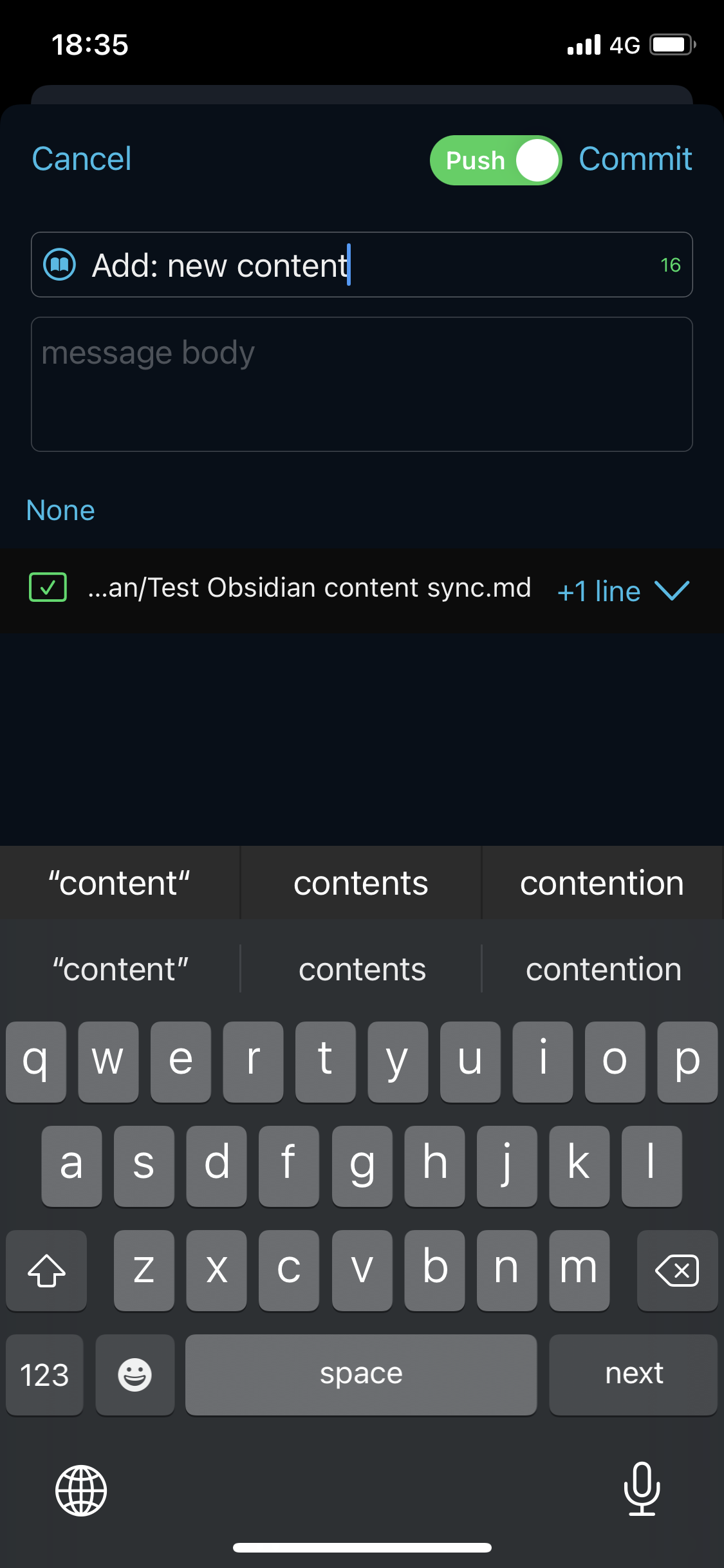 当您在本地某个 vault 进行了编辑,比如添加了一些文件。现在您想要把内容提交到远程 Git 服务4,进而同步到其他设备。那么请按照这样的步骤操作。